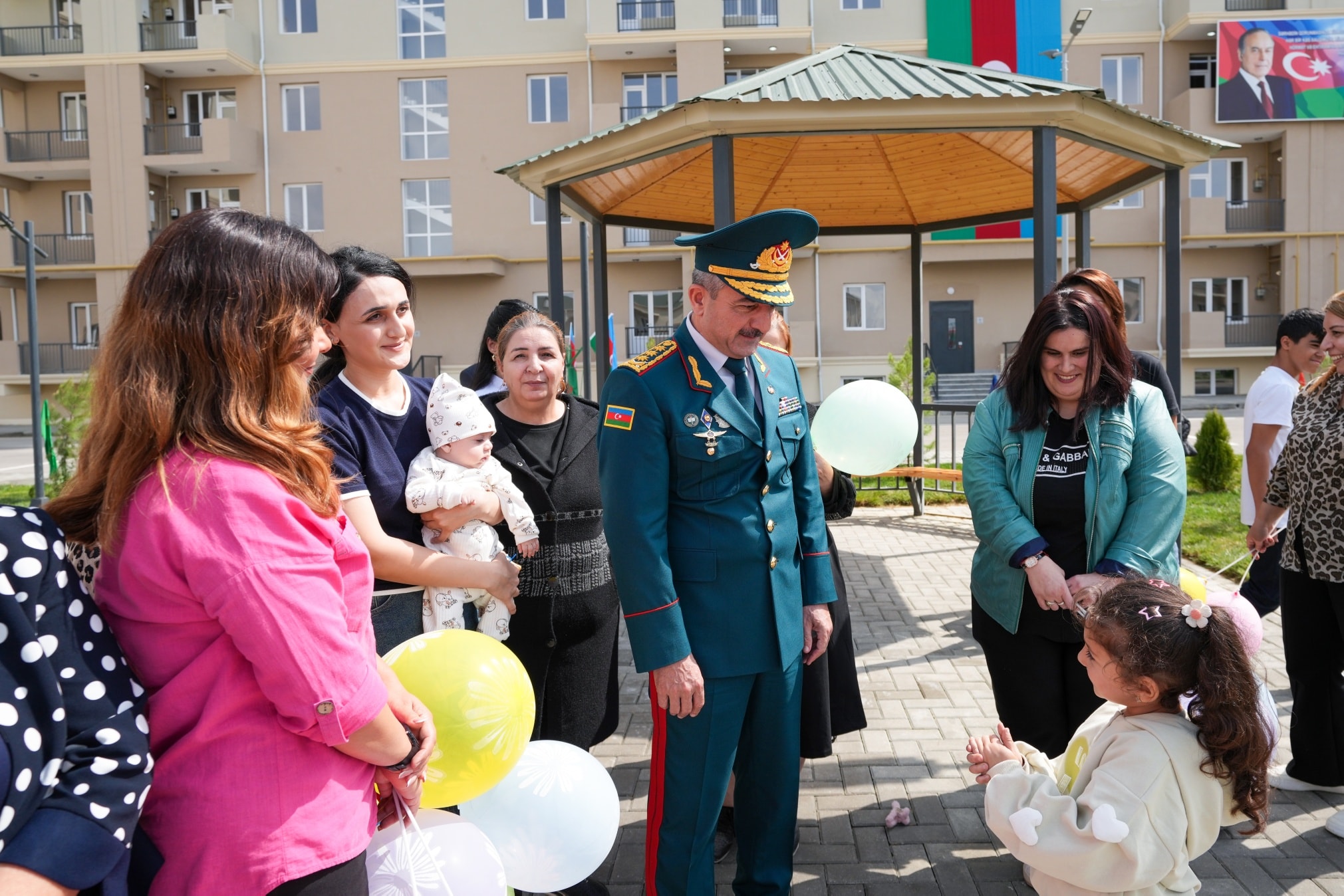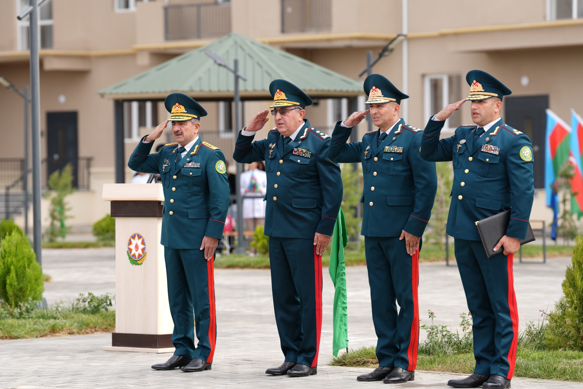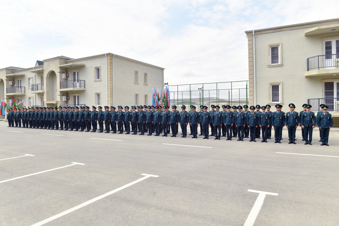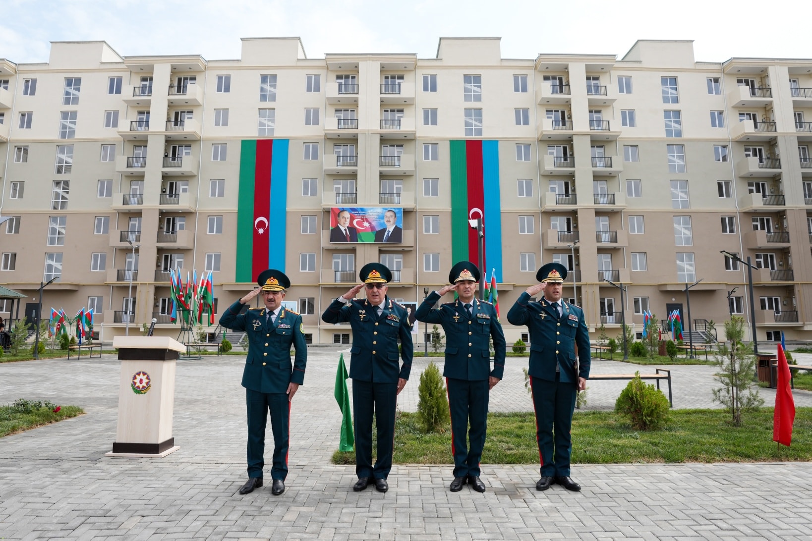 On September 19, in accordance with the instruction of the President of the Republic of Azerbaijan, Victorious Commander-in-Chief of the Armed Forces Mr. Ilham Aliyev, regarding the improvement of the social and living conditions of military personnel, the opening ceremony of a newly constructed residential complex was held at the “N”-numbered military unit of the State Border Service. The complex includes three 7-storey buildings with 8 entrances and two 2-storey buildings with 6 entrances. Following the ceremony, 270 apartments were officially handed over for service use by officers, warrant officers, and long-term active military personnel. It was noted during the event that the renovated residential buildings meet modern standards — they are equipped with water and electricity lines, elevators, centralized heating systems, kitchen equipment, and sanitary installations. Additionally, parks and sports grounds have been built in the courtyards, landscaping work was carried out, and trees and flower bushes were planted. Asphalt was laid throughout the area. Residents expressed their gratitude to the President for the special care and attention shown. After the ceremony, the Head of the State Border Service, Colonel-General Elchin Guliyev, and the head of “ArchiCO Engineering Company,” Mr. Mahammad Musayev, along with the leadership team, visited the apartments and reviewed the living conditions. The event concluded with a group photo taken with the new residents.